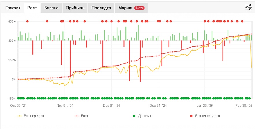 На этом скриншоте представлена информация о работе нашего робота Monkey на 28.02.2025.